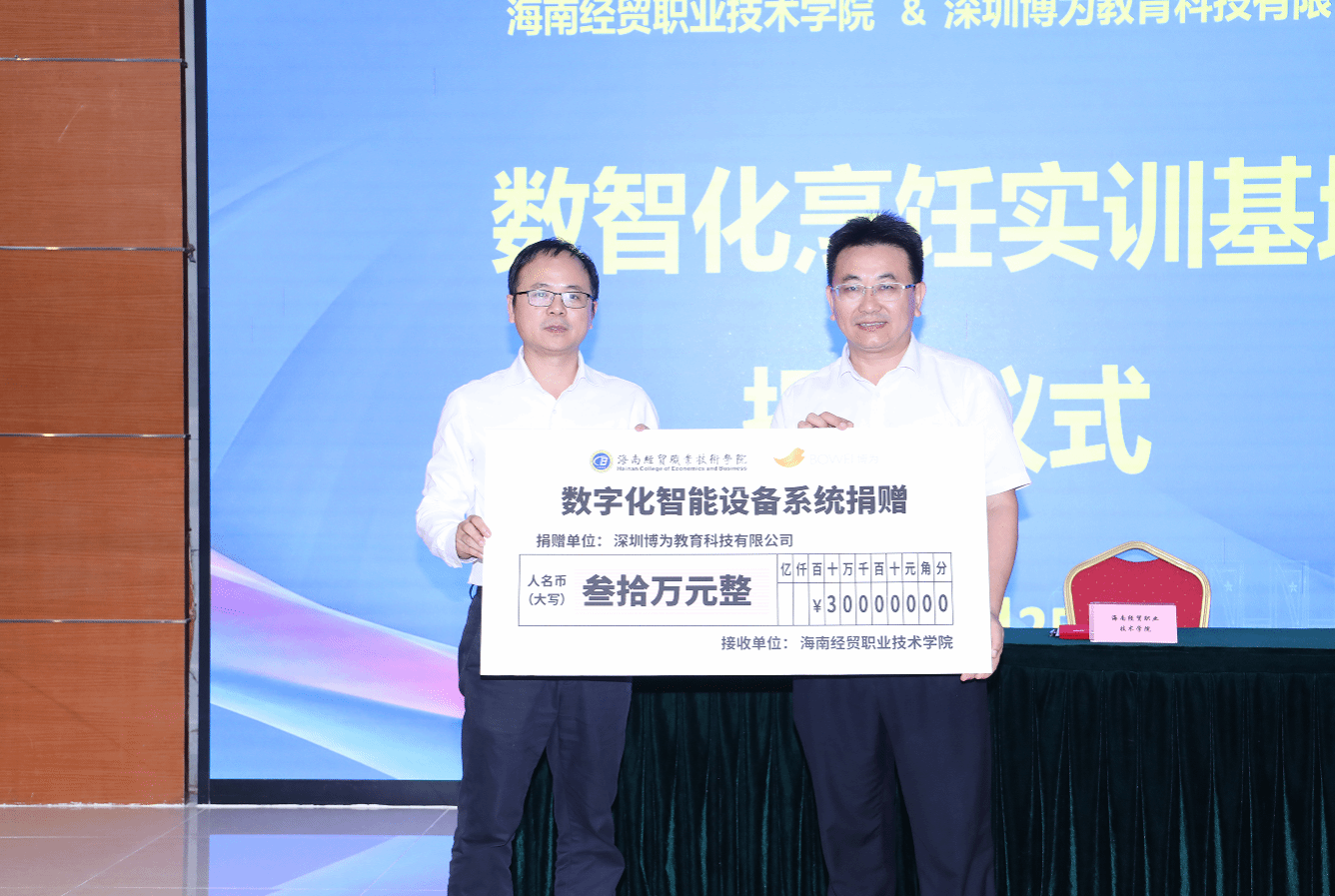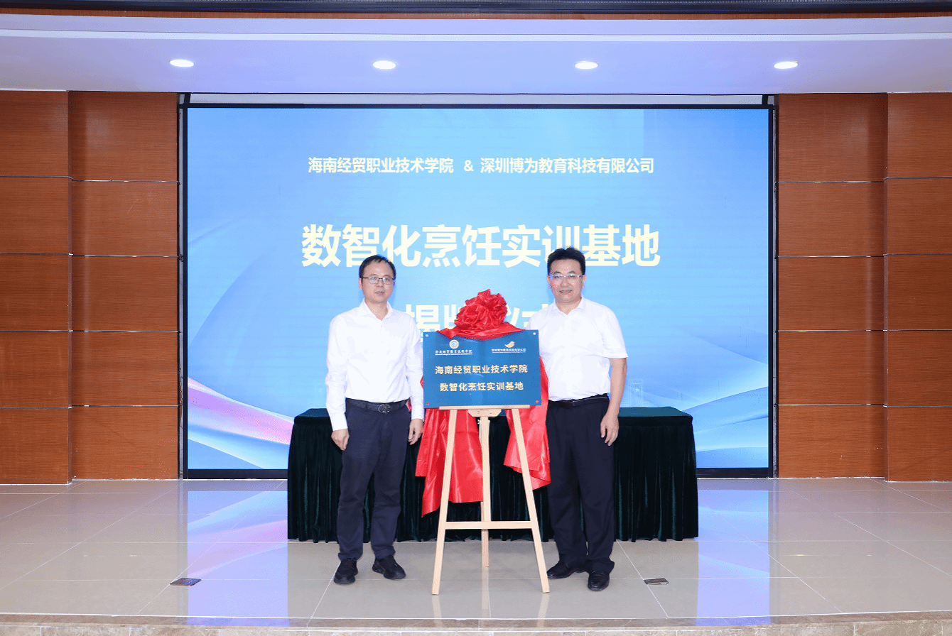 本次成果展示活动的另一亮点是我校与深圳博为教育科技有限公司建立了数智化合作关系,成立了数智化烹饪实训基地,并接收深圳博为教育科技有限公司为基地捐赠30万元。该基地以 “数智赋能烹饪教学、实践对接产业需求” 为定位,整合前沿设备、真实项目与本土特色资源,为烹饪专业学生搭建 “从课堂到职场” 的实战桥梁,也为海南自贸港餐饮数智化人才培养提供硬件支撑。