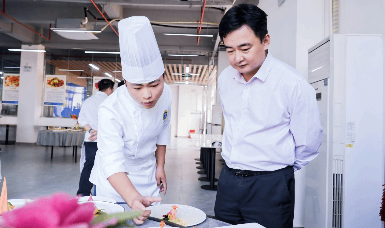 此次改革由烹饪工艺与营养专业教研室统筹推进,并得到学院领导的高度重视。考试期间,院长与书记亲临现场观摩指导,对同学们的创意设计与实操表现给予充分肯定,为本次教学改革提供了大力支持。