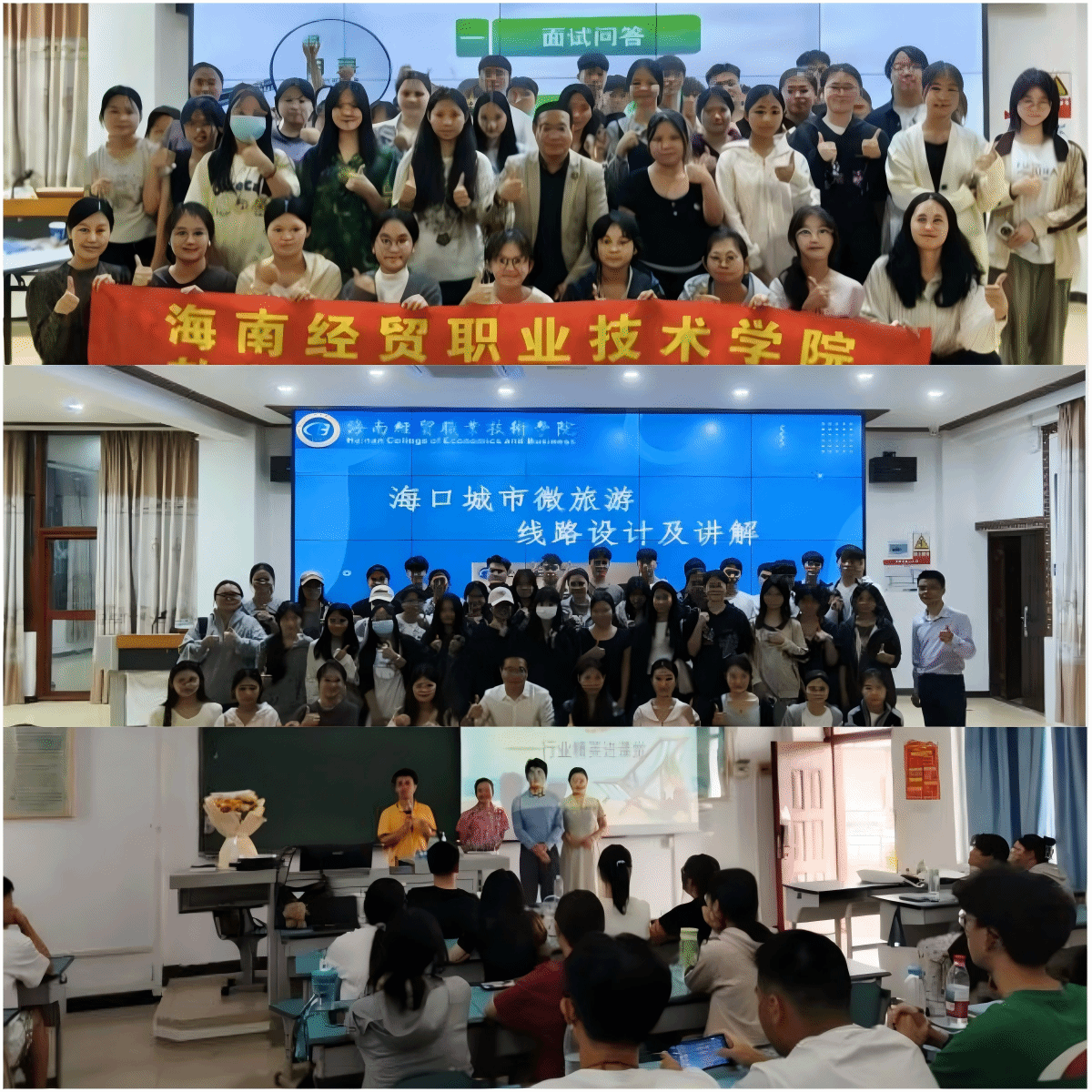 聚焦学生专业成长,构建“交流+培训+教学+实践”四维培养体系。邀请行业专家、国赛优秀选手进校园分享职业前景与备赛经验;组织100余人次导游资格证考前培训及职业技能竞赛辅导,提升考证通过率与赛事竞争力;深度参与《海南旅游景点讲解》等课程教学与考核,开设《海口城市微旅游线路设计与讲解》微课,推动行业前沿融入课堂;组织学生赴海南省博物馆开展实地讲解培训,实现理论与实践无缝衔接,为学校“双高”建设与升本筑牢专业根基。